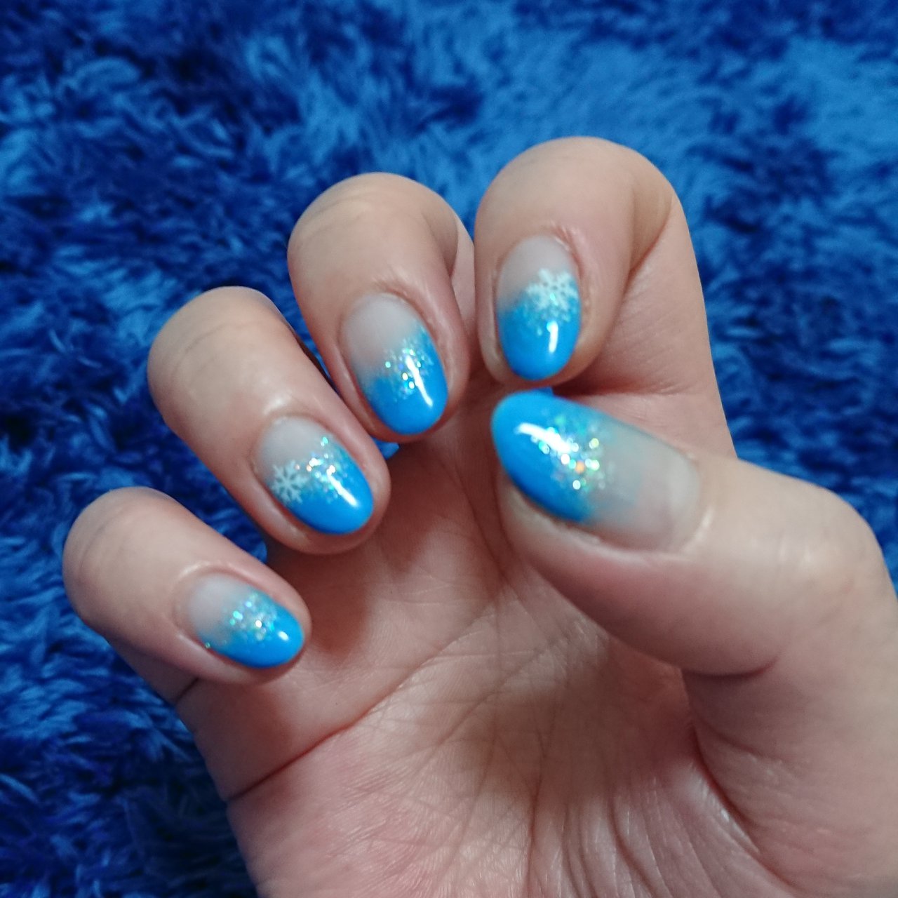 冬 グラデーション ホログラム ミディアム 水色 きゃほのネイルデザイン No ネイルブック